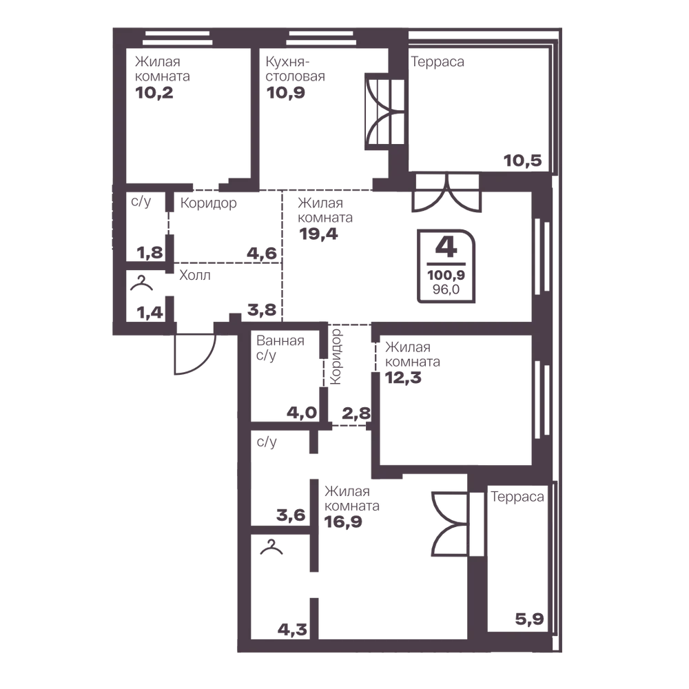 3-комнатная 98.5 м